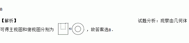 如图,圆柱体中挖去一个小圆柱,那么这个几何体的主视图和俯视图分别为( )