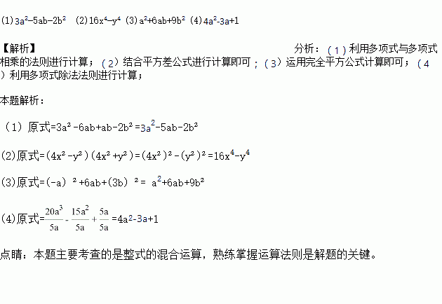 ⑶、(-a-3b)2 ⑷、(20a3-15a2+5a)(5a)