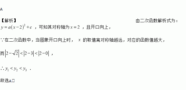 已知二次函数,当自变量分别取、、时,对应的函数值分别: , , ,则, , 的大小关系正确的是( ).