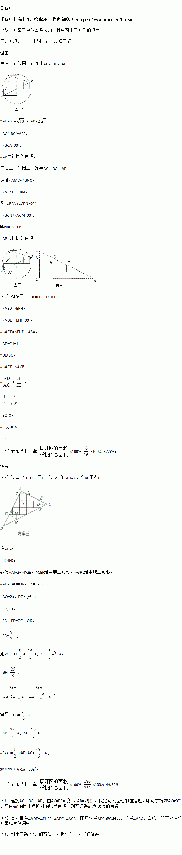 发现:(1)方案一中的点A、B恰好为该圆一直径的两个端点.