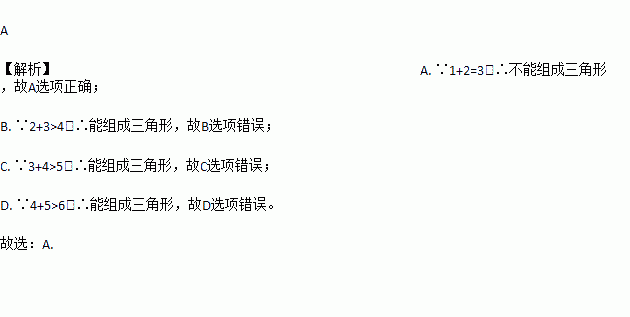 下列长度的三条线段不可能组成三角形的是( )