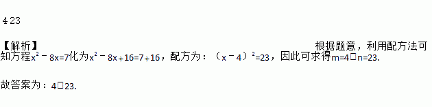 若将方程x2﹣8x=7化为(x﹣m)2=n,则m=_____,n=_____.