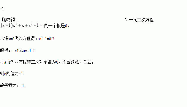 关于x的一元二次方程的一个根是0,则a的值为 ____.