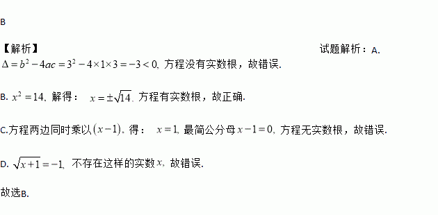 下列方程有实数根的是 ( ).