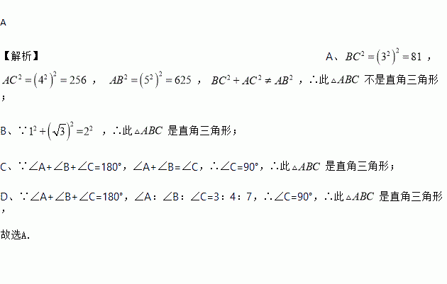 满足下列条件的不是直角三角形的是( ).