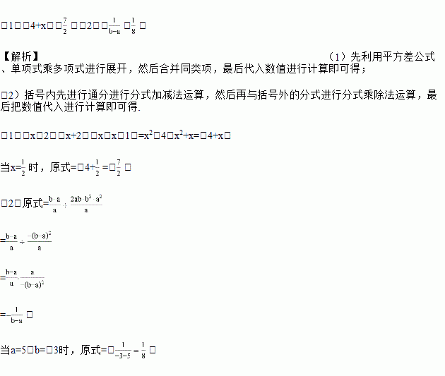 计算:(1)先化简,在求值:(x﹣2)(x+2)﹣x(x﹣1),其中x=