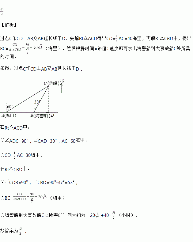 一艘观光游船从港口以北偏东![]()