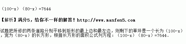 如图,在长为100米,宽为80米的矩形场地上修建两条宽度相等且互相垂直的道路,剩余部分进行绿化,要使绿化面积为7644米2,则道路的宽应为多少米?设道路的宽为x米,则可列方程为 .