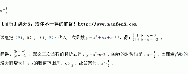 如图,已知二次函数y=x2+bx+c的图象经过点(﹣1,0),(1,﹣2),当y随x的增大而增大时,x的取值范围是 .