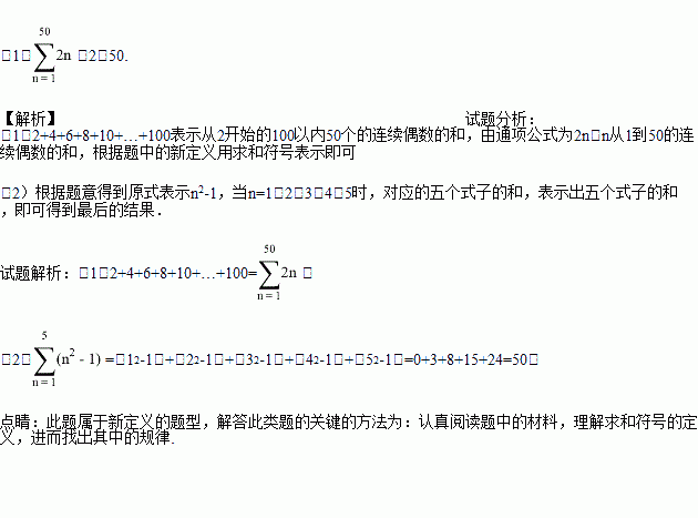 (1)2+4+6+8+10+…+100(即从2开始的100以内的连续偶数的和)用求和符号可表示为__________;