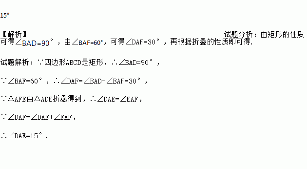 如图所示,矩形ABCD沿AE折叠,使点D落在BC 边长的点F 处,如果∠BAF=60°,求∠DAE的度数.