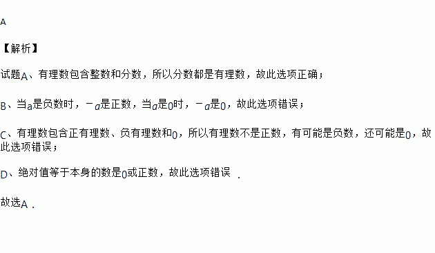 A. 分数都是有理数 B. ﹣a是负数