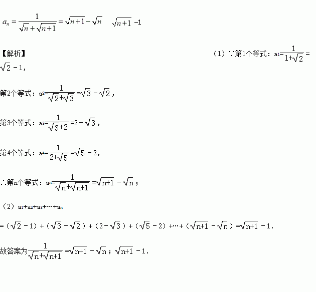 (1)请写出第n个等式:an=___________;