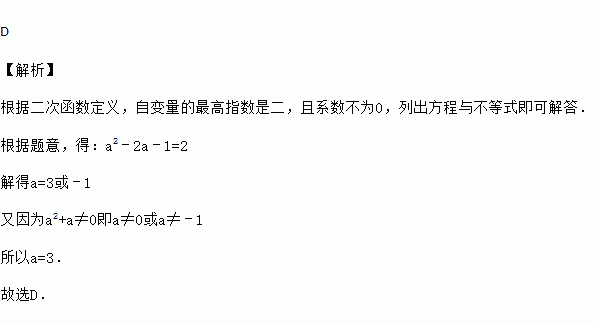 A. a=﹣1或a=3 B. a≠﹣1且a≠0 C. a=﹣1 D. a=3