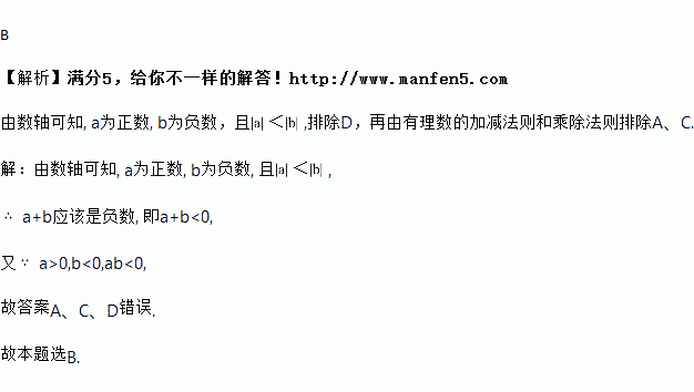 A. a+b>0 B. a+b<0 C. ab>0 D. |a|>|b|