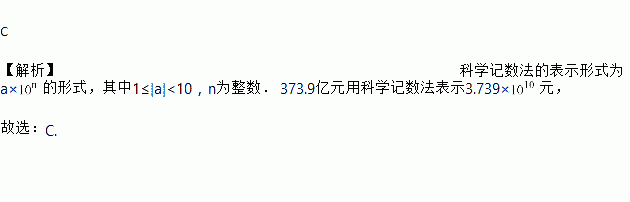 2016年鄞州区财政收入仍保持持续增长态势,全年财政收入为373.9亿元,其中373.9亿元用科学记数法表示为( )