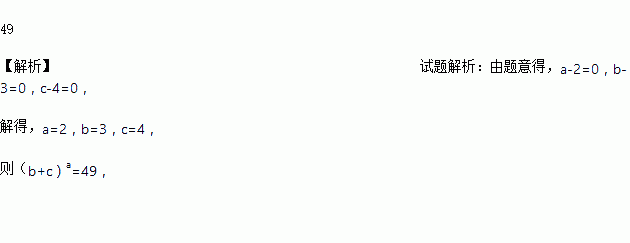 若|a-2|+(b-3)2+(c-4)2 =0,则(b+c)a =________.