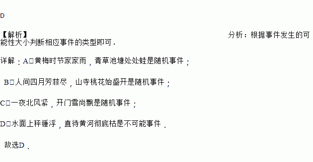 从概率统计的角度解读下列诗词所描述的事件,其中可能性最小的是( )