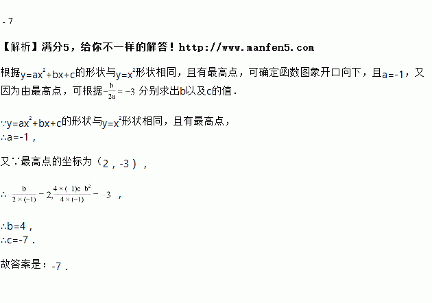 已知抛物线的形状与抛物线形状相同,最高点的坐标为,则的值是________.