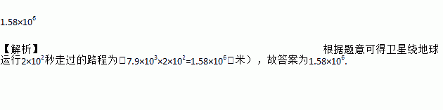 卫星绕地球运行的速度是7.9×103米/秒,则卫星绕地球运行2×102秒走过的路程为________米.