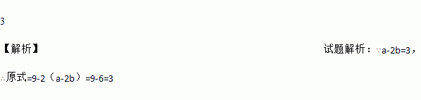 若a-2b=3,则9-2a+4b的值为 _____________.