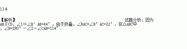 如图将□ABCD沿对角线AC折叠,使点B落在点B’处.若∠1=∠2=44°,则∠B为____°.