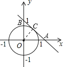 ,令x=0求出y的值,确定出B的坐标,得到OB的长,令y=0求出x的值,确定出A的坐标,得到OA的长,在直角三角形AOB中,利用勾股定理求出AB的长,再利用面积法求出斜边上的高OC,得到OC的长等于圆的半径1,可得出直线与圆相切.