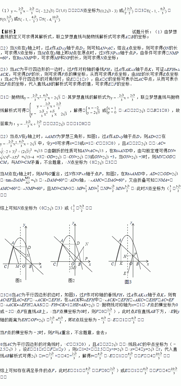Ìî¿Õ£º¸ÃÅ×ÎïÏߵġ°ÃÎÏëÖ±Ïß¡±µÄ½âÎöʽΪ______£¬µãAµÄ×ø±êΪ______£¬µãBµÄ×ø±êΪ______£»![]()
