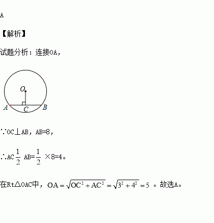 如图在⊙O中,弦AB=8,OC⊥AB,垂足为C,且OC=3,则⊙O的半径