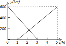 如图,A、B两地相距600km,一辆动车从A地开往B地,一辆高铁从B地开往A地,高铁先出发,一小时后,动车才出发,设动车离A地的距离为y1(km),高铁离A地的距离为y1(km)高铁出发时间为t(h),变量y1和y1之间的关系图像如图所示:
