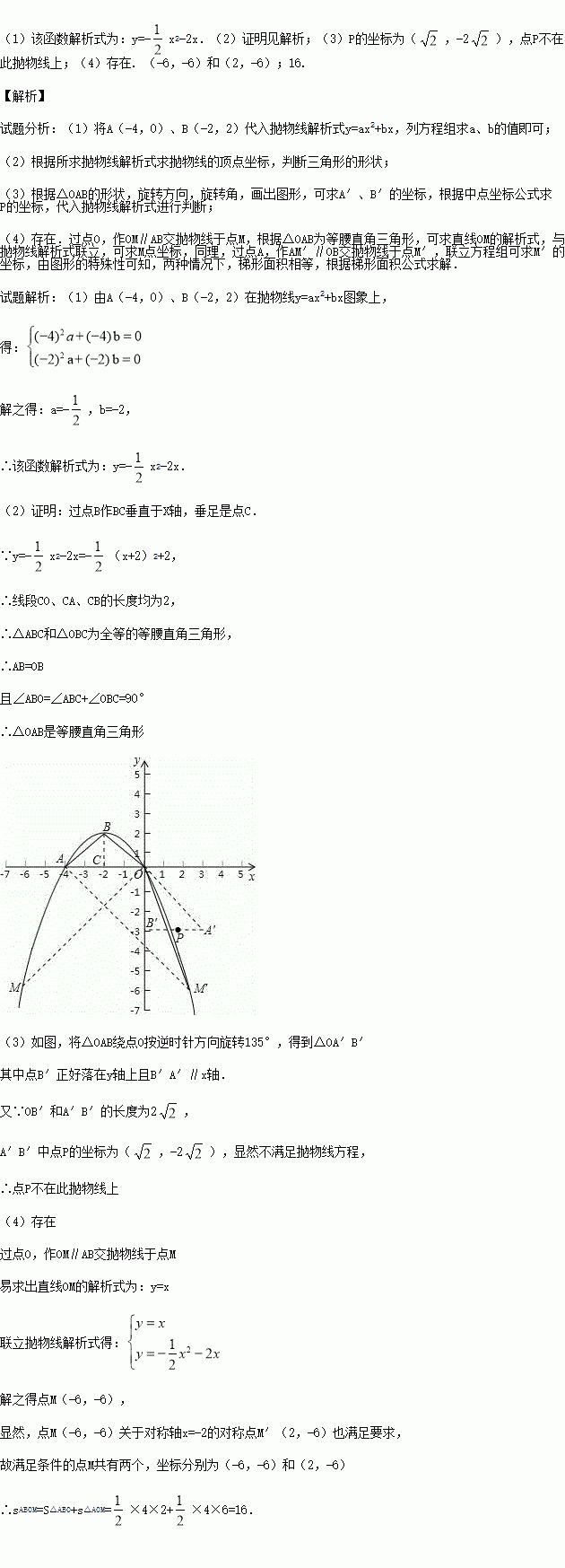 如图,抛物线y=ax2+bx经过点A(-4,0)、B(-2,2),连接OB、AB,