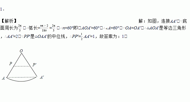 圆锥的底面周长为,母线长为2,点P是母线OA的中点,一根细绳(无弹性)从点P绕圆锥侧面一周回到点P,则细绳的最短长度为______.
