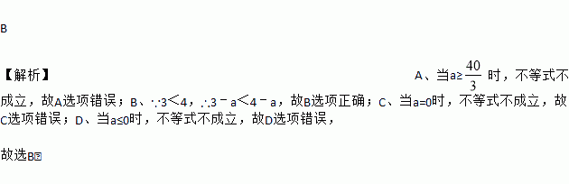A. 40>3a B. 3﹣a<4﹣a C. ﹣a>﹣2a D.