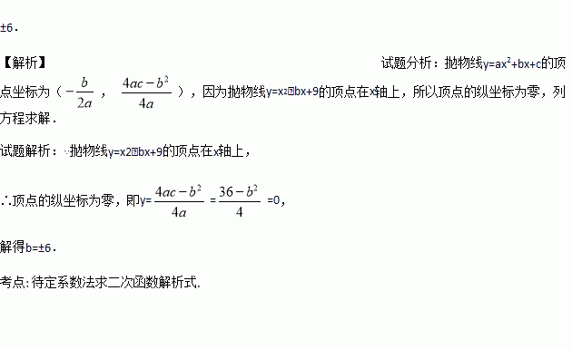 若抛物线y=x2﹣bx+9的顶点在x轴上,则b的值为