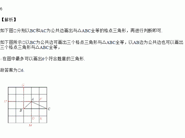 如图是5×5的正方形网格,△ABC的顶点都在小正方形的顶点上,像△ABC这样的三角形叫格点三角形.画与△ABC有一条公共边且全等的格点三角形,这样的格点三角形最多可以画出_____个.
