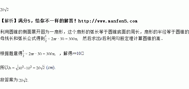 如图,用一个半径为,面积为的扇形铁皮,制作一个无底的圆锥(不计损耗),圆锥的底面半径,高为,则高为________.