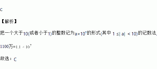 2017年10月18日19时32分,圆满完成与天宫二号目标飞行器两次交会对接使命的神舟十号飞船,星夜降落于内蒙古主着陆场.神舟飞船在轨运行了1100万公里的行程,成为迄今中国在太空飞行距离最长的飞船.用科学记数法表示飞行的公里数1100万为( )