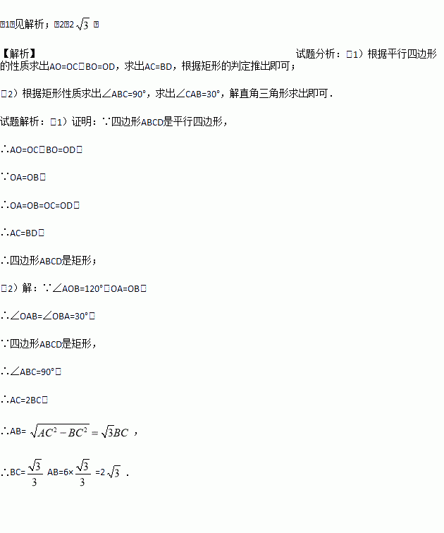 (2)若AB=6,∠AOB=120°,求BC的长.