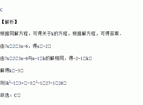 已知方程 与关于x的方程 的解相同,则 的值为( )