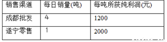 种植草莓大户张华有22吨草莓待售,现有两种销售渠道:一是运往省城成都直接批发给零售商;二是在遂宁本地市场零售. 经过调查分析,这两种销售渠道每天的销售量以及每吨所获纯利润见下表: