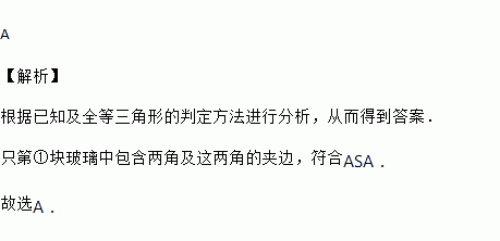 某同学不小心把一块玻璃打碎了,变成了如图所示的三块,现在要到玻璃店配一块完全一样的玻璃,那么应带哪块去才能配好( )
