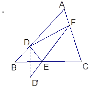 (1)作点D关于BC的对称点D`连结D`F交BC于E,则△DEF为所求![]()