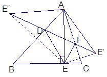 (3)过A作AE⊥BC,过点E分别作AB、AC的对称点E``、E`连结E`E``交AB、AC于D、E,则DEF为所求![]()