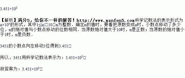 某地举办主题为“不忘初心,牢记使命”的报告会,参加会议的人员3451人,将3451用科学记数法表示为_____.