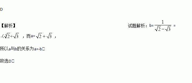 已知: , 则a与b的关系为( )