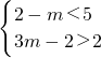 (2)若原方程的两个实数根一个小于5,另一个大于2,求m的取值范围.