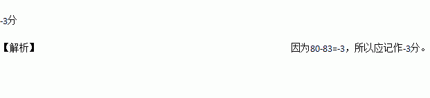 如果全班某次数学测试的平均成绩为83分,某同学考了85分,记作+2分,得分80分应记作_____.