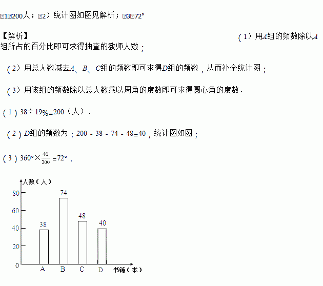 《教育导报》记者就四川省农村中小学教师阅读状况进行了一次问卷调查,并根据调查结果绘制了教师每年阅读书籍数量的统计图(不完整).设x表示阅读书籍的数量(x为正整数,单位:本).其中A:1≤x≤3; B:4≤x≤6; C:7≤x≤9;D:x≥10.请你根据两幅图提供的信息解答下列问题:
