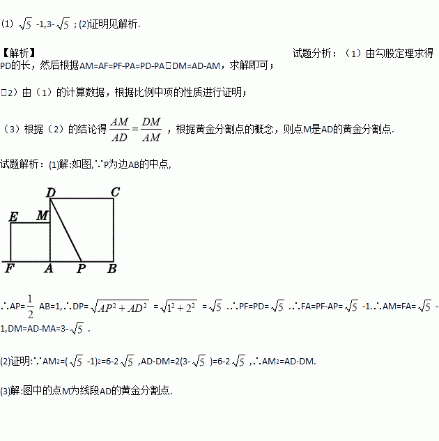 以长为2的线段AB为边作正方形ABCD,取AB的中点P,连接PD,在BA的延长线上取点F,使PF=PD,以AF为边作正方形AMEF,点M在AD上.