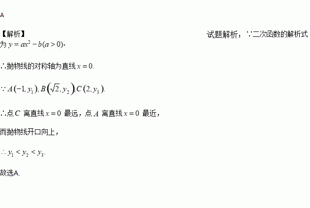 ,y2),C(2,y3)三点都在二次函数y=ax2﹣b(a>0)的图象上,那么y1,y2,y3的大小关系是______.